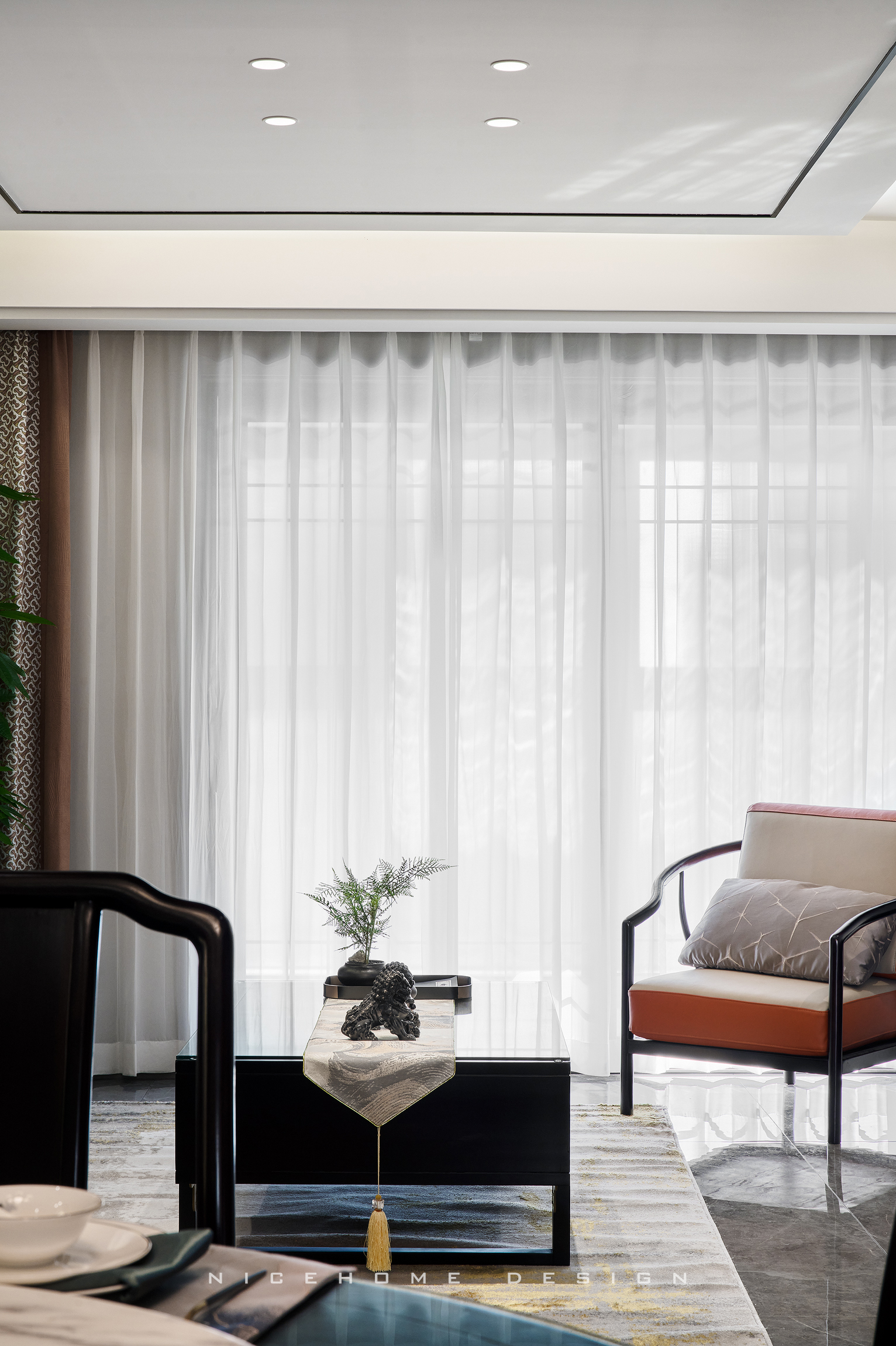 護(hù)墻板面加入圓形意境裝飾,展現(xiàn)國(guó)風(fēng)韻味