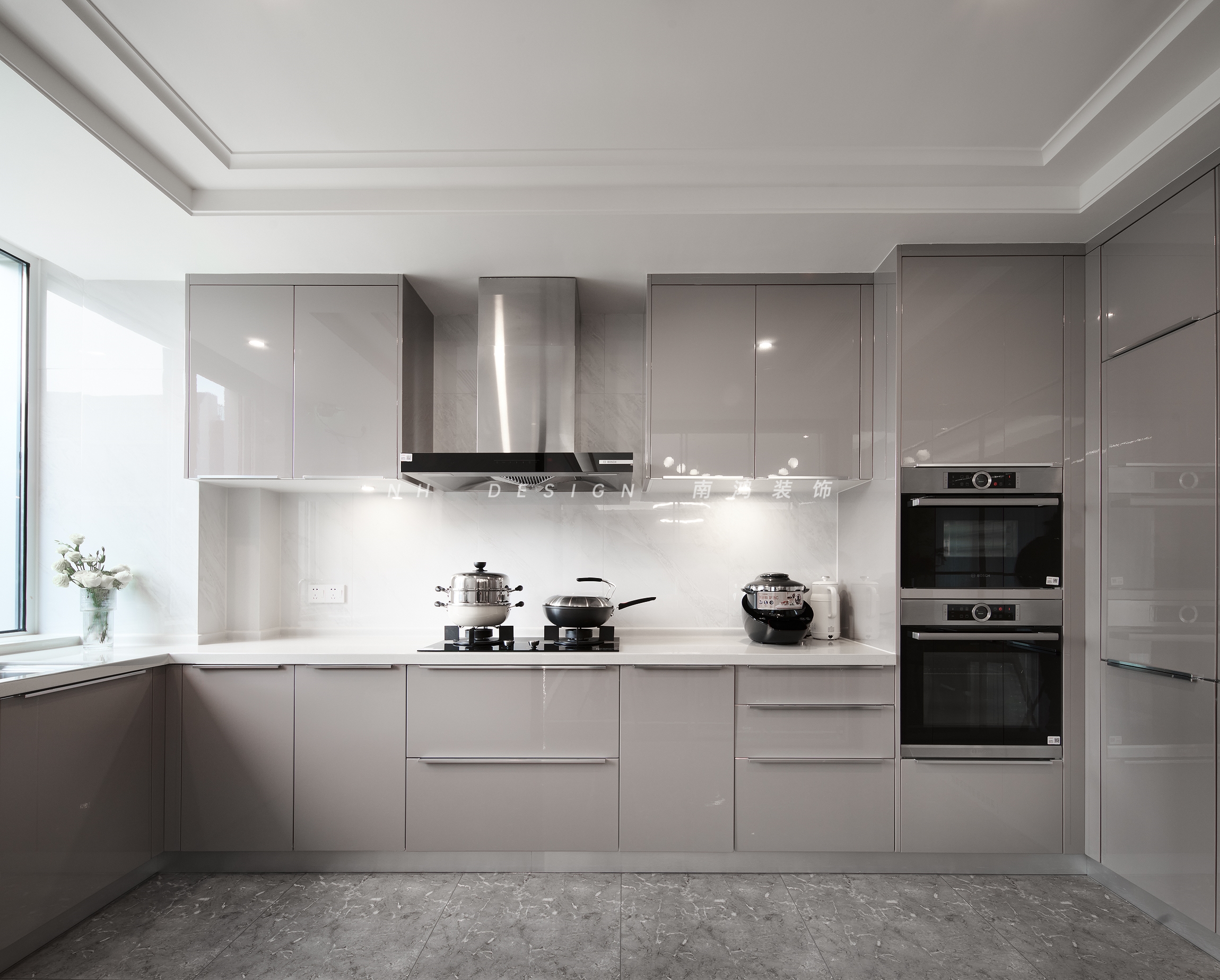 淺灰色的櫥柜為廚房帶來干凈利落的爽朗感,內(nèi)嵌的廚電設(shè)備,將功能與顏值完美結(jié)合。