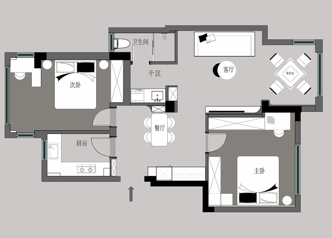 客廳在與主臥交換位置并包進(jìn)陽(yáng)臺(tái)之后,空間寬敞通透了許多。素白的基底打造清爽整潔的觀感,黑白灰的現(xiàn)代款家具沉穩(wěn)有型,簡(jiǎn)潔中透著個(gè)性的格調(diào)。