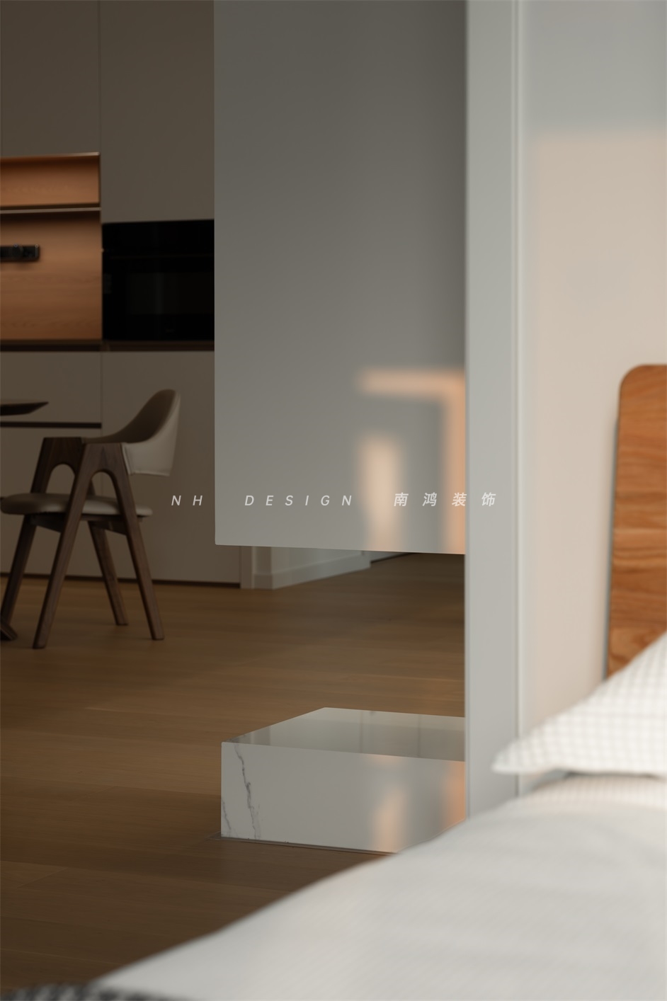 客餐之間串聯(lián)起視線通暢的格局,木白色系調(diào)配出和諧感,加之柔和光感的烘托,展現(xiàn)出恰到好處的空間美學(xué)。