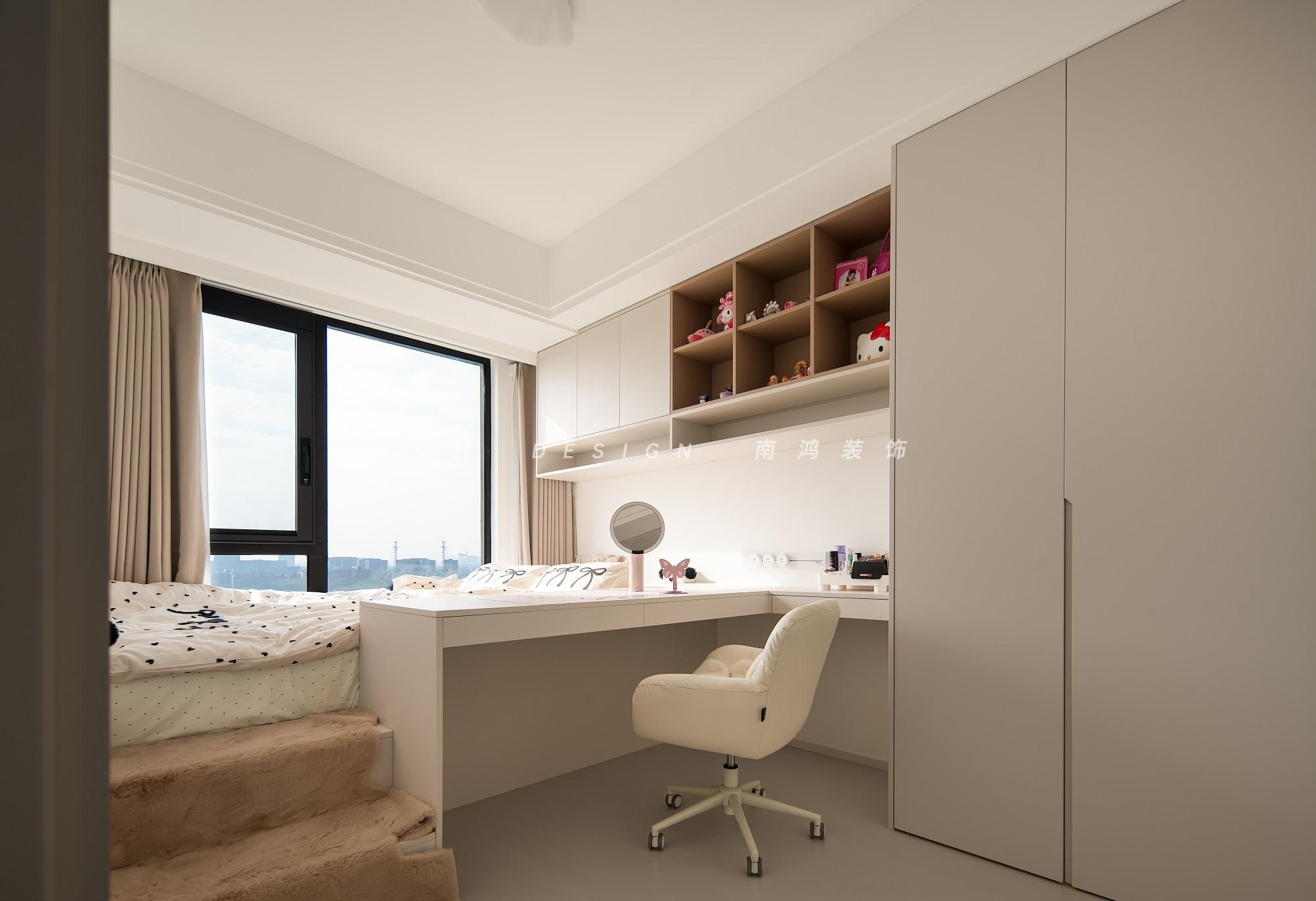 兒童房做了十分高效的整合型空間設(shè)計,榻榻米+衣柜+轉(zhuǎn)角書桌+吊柜,環(huán)抱式的布局既保證功能完備,又為孩子留出了寬敞舒適的學習和活動空間。