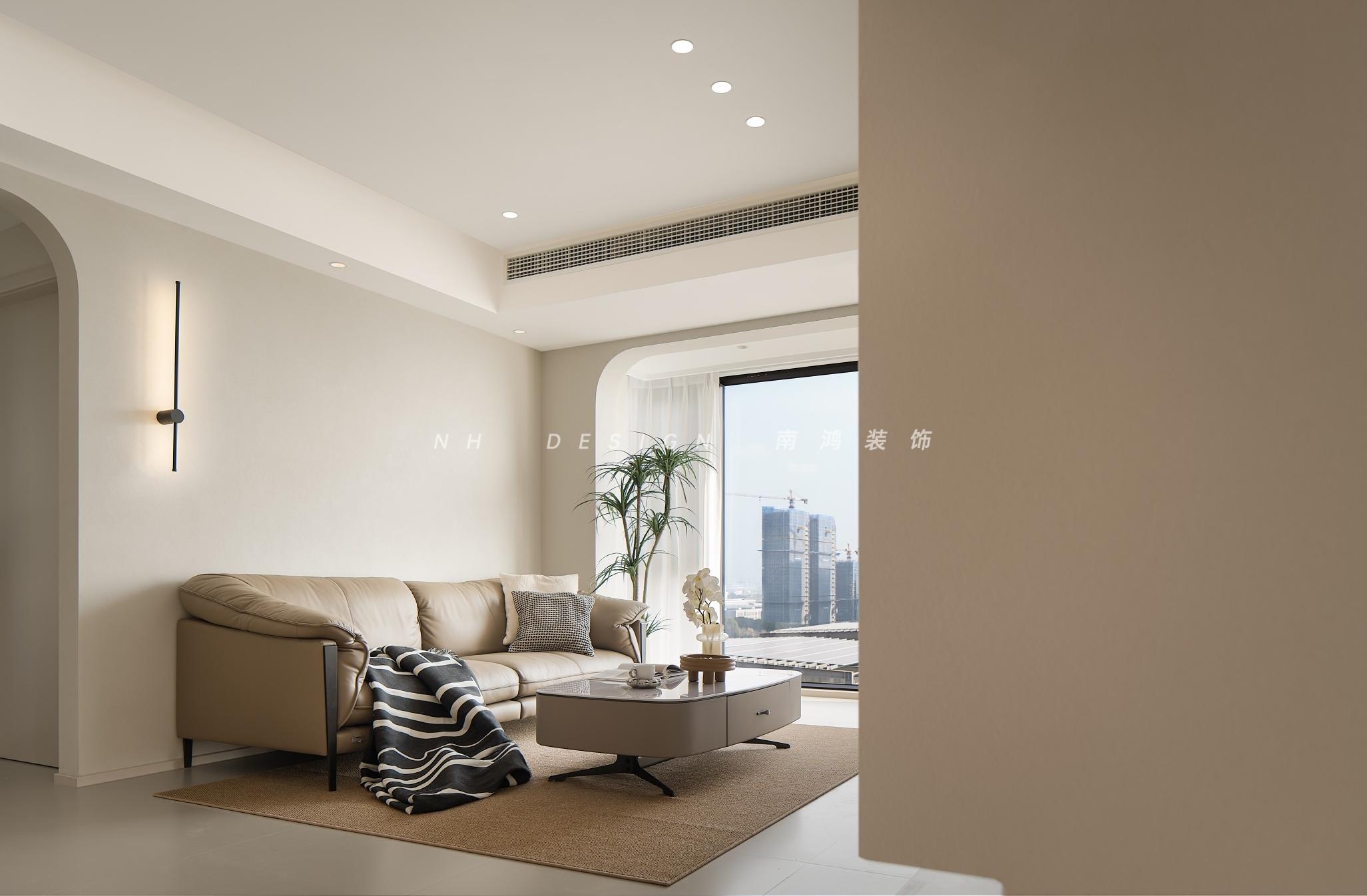 開放式的布局、清淺的色調(diào)與柔光磚的通鋪,為空間筑下溫暖干凈的基調(diào)?;【€元素從陽臺埡口一路到電視背景墻,形成柔和的視覺連貫性。奶油風的軟裝選品,在光線下折射出細膩的層次。