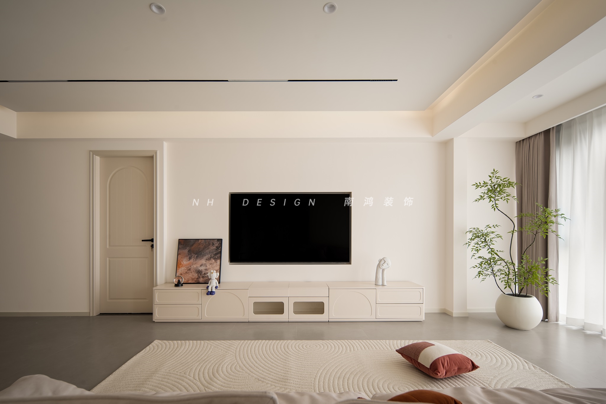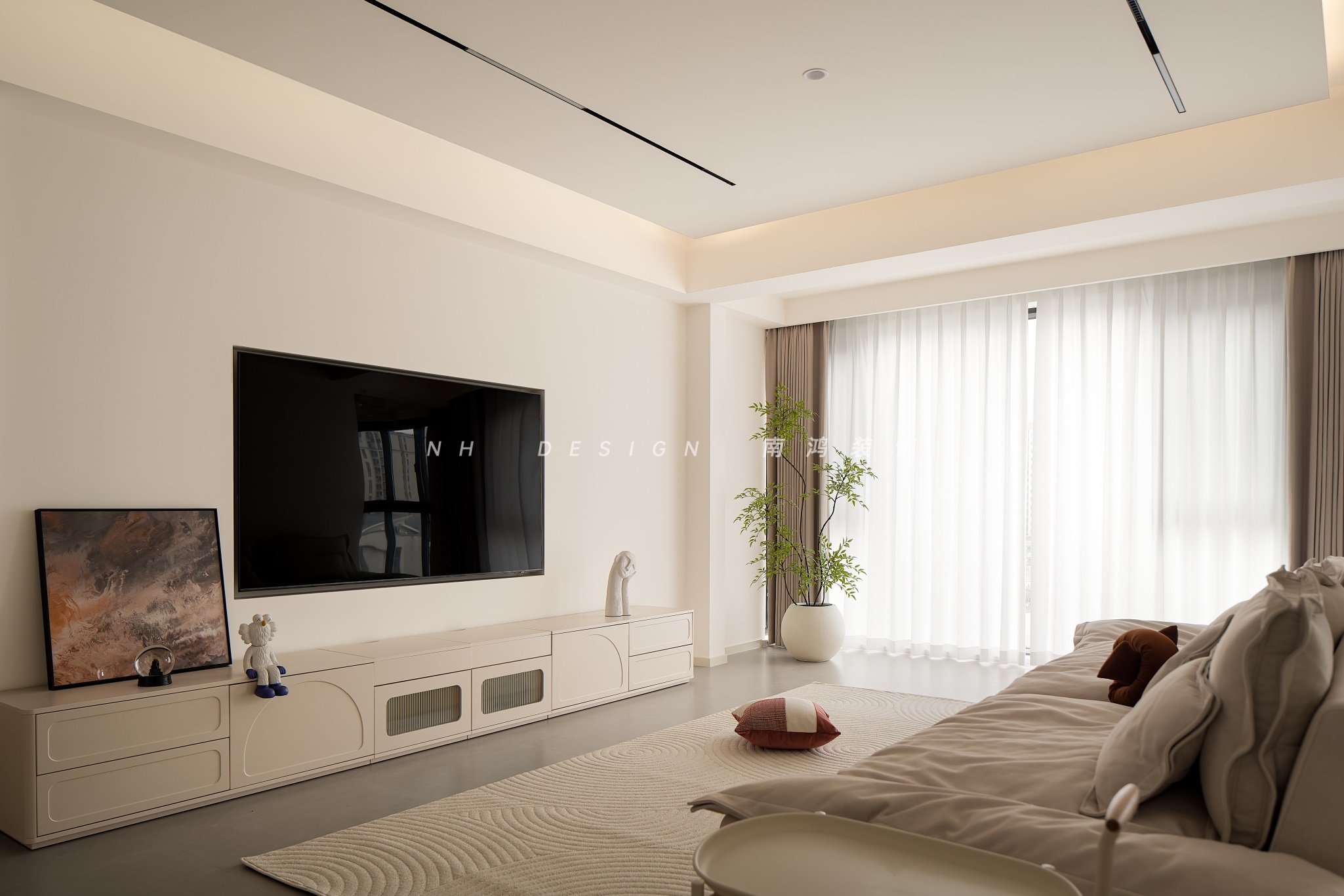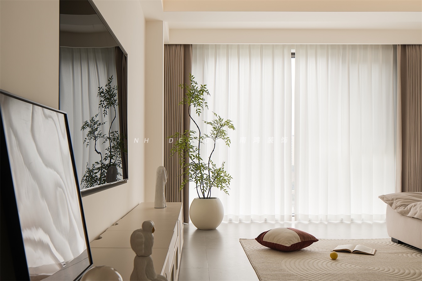 客廳空間以大面積的留白,營造清爽簡潔的氛圍,搭配奶油風的家具,變得更加溫馨而有生活氣息。